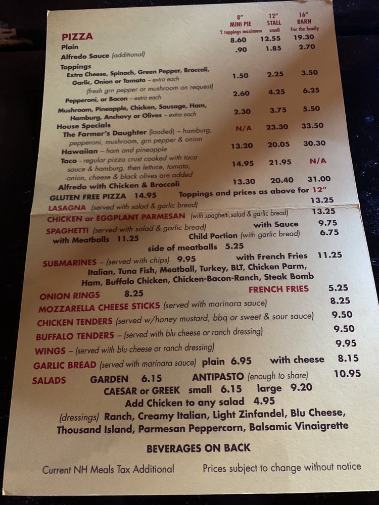 Introducing the Menu at Pizza Barn Center Ossipee